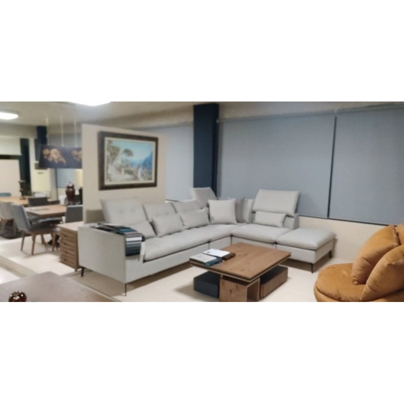 Πολυμορφικος γωνιακος καναπες με αποσπομενα 4 κομματια και τη γωνια να προσαρμοζεται και στις 2 πλευρες του καναπε και το σκαμπο ελευθερο.